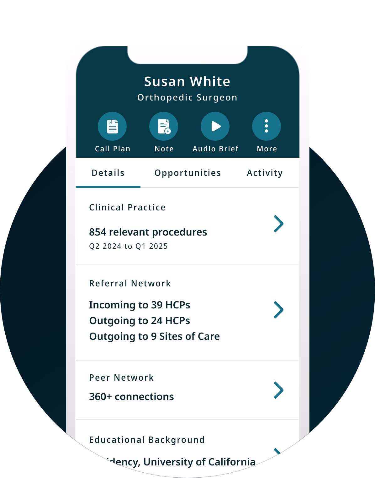 Our intelligence platform is purpose-built for the MedTech industry’s unique commercialization process. We're transforming how they bring products to market so they can deliver better outcomes for patients.